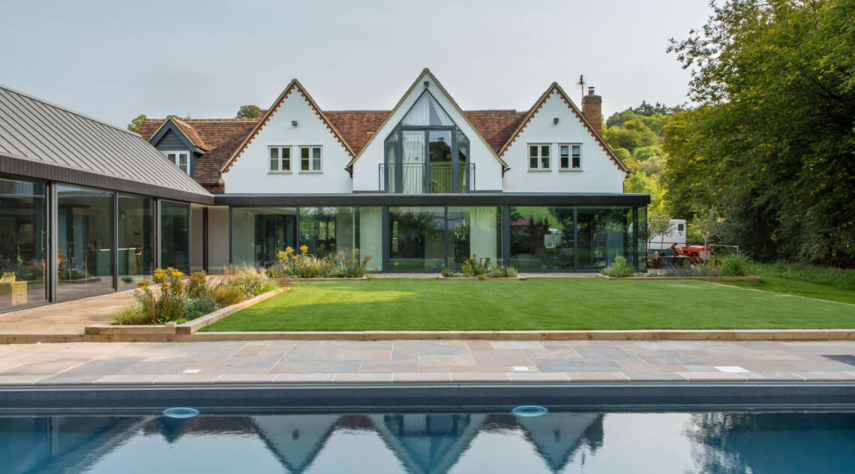 The build of a new wing with wrap around glazed extension and ground floor remodel, designed for modern family living.